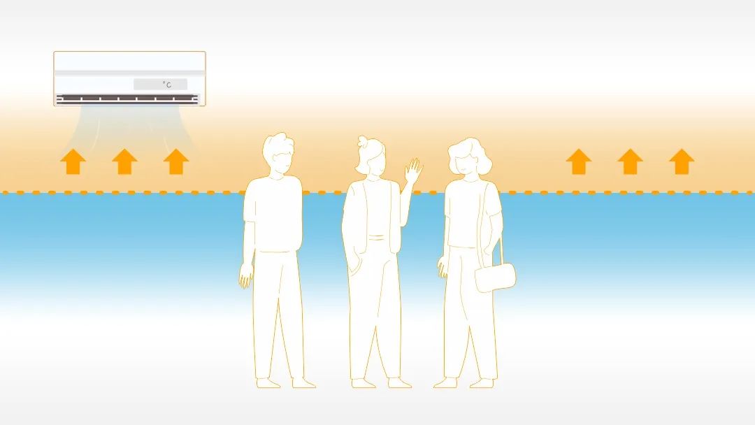 空調(diào)熱量的傳導(dǎo)從出風(fēng)口由上而下,熱空氣“吹頭”,上部空間溫度較高而下部空間較低,影響舒適度。